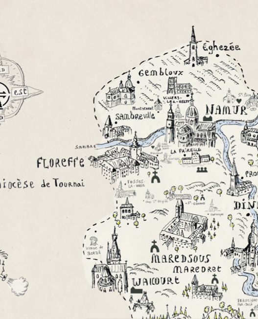 Depuis peu, le Diocèse de Namur vous propose une nouvelle carte illustrée, réalisée par Quentin Denoyelle. En un coup d’œil, vous pouvez découvrir et admirer la richesse du patrimoine de ce diocèse : les abbayes, des églises, des chapelles et les sanctuaires. La carte est disponible gratuitement ici.